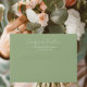 Sage green coloured mailing envelope for your wedding invitations and features your name and address printed on back flap in a modern script style. Personalise your envelope by editing and replacing name and address with your own. Edit further to change font style or colour. Select your envelope size that fits your invitation.