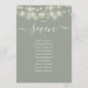 These elegant dsage green double-sided table number seating chart cards featuring pretty string lights are perfect for all celebrations. Designed by Thisisnotme©