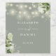 Elegant string lights greenery floral sage green wedding design personalised with your names and special wedding date. Designed by Thisisnotme©