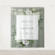 This rustic elegant string lights watercolor sage green country floral wedding backdrop can be personalised with your information in chic typography. Designed by Thisisnotme©
