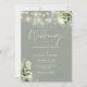 This elegant sage green wedding invitation, featuring pretty string lights and floral greenery, can be personalised with your information in chic typography with your wedding website details and your QR code on the reverse. Designed by Thisisnotme©
