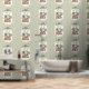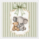 Sage Green Striped Elephant and Teddy Bear Wallpaper