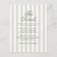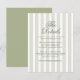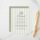 Sage green striped wedding details card designed for refined, preppy garden celebrations. Featuring classic vertical stripes and elegant typography, this enclosure card blends timeless East Coast sophistication with modern grandmillennial charm. Perfect for sharing accommodation information, RSVP instructions, and travel details in a clean, polished format. Ideal for spring and summer weddings, it pairs beautifully with matching sage envelopes or layered invitation suites. Personalize to complete your cohesive wedding stationery collection.