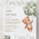 Sage Green Teddy Bear Balloons Floral Baby Shower All In One Invitation