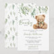 Sage Green Teddy Bear Bow Greenery Baby Boy Shower Invitation