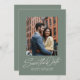 Sage green trendy script two photo wedding save the date