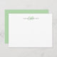 Sage Green Two Letter Initial Monogram Name Personal Note Card with sage green background on the backside. Simple, chic and modern. Personalised stationery with a feminine style. Monogram initials.