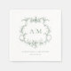 These elegant Sage Green Victorian Baroque Floral Crest Wedding paper napkins feature a timeless vintage style botanical monogram crest formed by vines of foliage and floral accents..