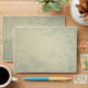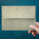 Elegant vintage antique custom envelope design featuring a sage green coloured background with a soft fades of butterflies and flowers. This design also comes on many other paper products to suit all your wedding set needs. Follow the link below.