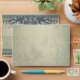 Elegant vintage antique wedding envelope design featuring decorative floral borders top and bottom with a floral embelihment across the top. Sage Green coloured background with a faux texture applied for a classic aged look. This design also comes on many other paper products to suit all your wedding set needs. Follow the link below.