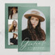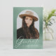 Celebrate your graduate’s achievement with this elegant graduation announcement featuring their photo framed within an arch design against a serene sage green watercolor background. The word "Graduate" is beautifully written in white modern calligraphy, complemented by the graduate’s name, school, and graduation year below. The back of the card showcases a unique grid-style layout with 6 square photos, perfect for highlighting additional memories or moments. Ideal for both high school and college graduates, this sophisticated design creates a lasting impression for friends and family.