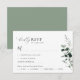 Wedding Rsvp card with black script and watercolor greenery foliage.