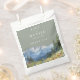 These modern sage green watercolor mountain wildflower wedding favour bags can be personalised with your information in elegant typography. Designed by Thisisnotme©