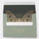 Simple, elegant, modern sage green 5x7 envelope with adorable unique gold butterfly - symbol of spiritual rebirth, hope, and life, return address and monogram at the top back.