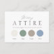 An elegant wedding attire card featuring a refined neutral colour palette of ivory, sage, taupe, and dusty blue. Designed in a minimalist and sophisticated style, this card helps guide guests on dress code while maintaining a cohesive wedding aesthetic.