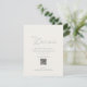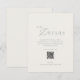 An elegant wedding details card featuring refined sage green typography and a modern QR code layout.