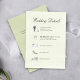 Guide your guests through your special day with this elegant sage green wedding details timeline card. Featuring soft botanical tones, refined calligraphy, and a clean layout, this enclosure card beautifully outlines your ceremony, reception, and evening events. The included QR code allows guests to easily access your wedding website for additional details, making it both stylish and functional. Perfect for greenery, garden, or modern minimalist wedding themes.