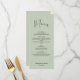 Elegant sage Green Flat Menu Card (size 4" x 9")
