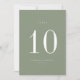 Modern minimalist, sage green and white wedding table number card. Please note that table number cards must be numbered and added to your cart individually.