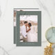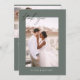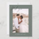 Sage Green Romantic Wedding Thank You Cards that have a photo on the front and back. The Thank you cards contain a modern hand lettered cursive script typography that are elegant, simple and modern to use after you minimalist simple wedding day celebration.