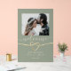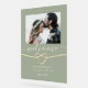 Embrace timeless elegance with our minimalist sage green wedding welcome sign, featuring a striking photo of the happy couple. Enhanced by a romantic gold rope heart and delicate handwritten calligraphy, it's the perfect blend of modern sophistication and heartfelt charm.