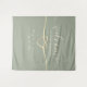 Elegant, modern, sage green welcome to our wedding backdrop with gold rope heart and simple handwritten script.