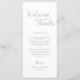 A white place card with sage green Welcome and Thanks brings a fresh and friendly tone to your table. The soft green shade suits minimalist, chic and classic receptions, creating a warm welcome for guests.