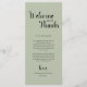 This sage green welcome card with the text Welcome and Thanks brings a gentle and inviting feel to your reception. The soft shade works beautifully with minimalist, rustic and modern weddings, creating a friendly first impression for your guests.