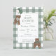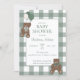 Sage Green White Bows and Teddy Bears Baby Shower Invitation