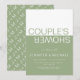 This wedding shower invitation presents a modern and playful aesthetic with its combination of sage green and white colour blocks. The top of the invite is white while the bottom has a refreshing sage green shade. The word 'COUPLE'S' is inscribed in sage green on the white block while the word 'SHOWER' is written in white on the sage green block in an upside down fashion. The minimalist look is further enhanced by the use of a simple font. On the other side, the couple's initials in white are gracefully placed on a sage green background, making this invitation complete.