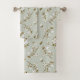 Sage Green & White Cotton Boll Stem Watercolour Bath Towel Set
