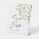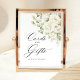 Create an elegant cards & gifts table with this sage green and white floral wedding pedestal sign, featuring soft watercolor roses and modern classic typography.