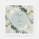 Elegant and romantic vintage botanical green and ivory/white watercolor floral and greenery custom wedding paper napkins. Personalised with the names of the bride and groom and their wedding date.