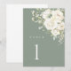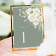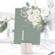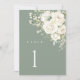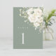 This sage green and white floral table number card features soft watercolor roses and airy botanical greenery, designed for elegant and modern classic wedding receptions.