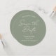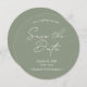 Announce your special day with our "Sage Green Minimal Wedding Save the Date Round Card." Featuring a sleek and modern design in elegant sage green, this card sets a sophisticated tone for your wedding. Personalise with your names, wedding date, QR code, wedding websites and details to make it uniquely yours. Perfect for couples seeking a minimalist and stylish save the date announcement.