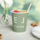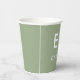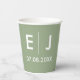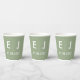 Elegant classic monogrammed paper cups in sage green and white with your initials and wedding date in traditional minimalist text.