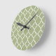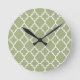 Sage Green White Quatrefoil Moroccan Pattern Round Clock