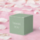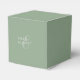 This chic and elegant wedding favour box features a contemporary set of fonts and script element in white, against a sage green background. The back includes couple monogram in a combination of sage green and white colours. Forms part of a wedding collection which includes a full set of wedding stationary and favours.