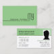 YOUR FAVORITE -Make a lasting impression with this elegant and simple sage green and white coloured business card design with monogram and (employees-) photo.