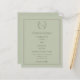 A sage green colored background decorated with a hand drawn crest. Warm taupe colored frames and text. Personalize and your monogram initials, names and details.