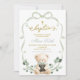 Sage Greenery Bow Coquette Bear Baptism Invitation