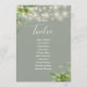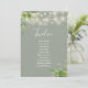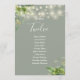 These elegant botanical greenery floral string lights wedding table numbers can be personalised with your guests' seating plan set in chic typography on a sage green background. The cards are printed on the front and back (double-sided). Designed by Thisisnotme©