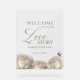 Modern stylish wedding welcome sign, with elegant watercolor floral sage greenery and dusty white garden roses, elegant modern hand drawn calligraphy. Classy and elegant, soft and modern sign