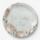 Modern stylish wedding paper plate with elegant watercolor floral sage greenery and dusty white garden roses, elegant modern hand drawn calligraphy. Classy and elegant, soft and modern invitation.