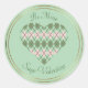 Sage Hearts Sage and Pink Argyle Heart Classic Round Sticker
