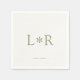 Stylish and chic with modern elegance. These soft ivory napkins feature couple initials and names in a contemporary set of sage green fonts and floral typography element.