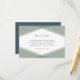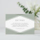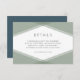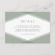 This modern wedding details card features a sage green layered geometric design on the front and a blue slate colour back side.