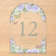 This exquisite acrylic table number features a beautiful sage green and purple lilac floral design in an arch shape. Easily personalise each table number by clicking the "Edit Using Design Tool" button to re-arrange and format the text to your liking. Choose from two exquisite finishes: Clear or Frosted, and select between two stylish corner options: Rectangle or Arched.