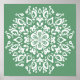 This white mandala sits on a grey-green background. The colors are natural and relaxing. Part of the Pras Mandala Collection.
