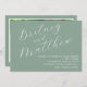 Sage minimalist photo wedding invitation with simple elegant calligraphy script for bride and groom's names.